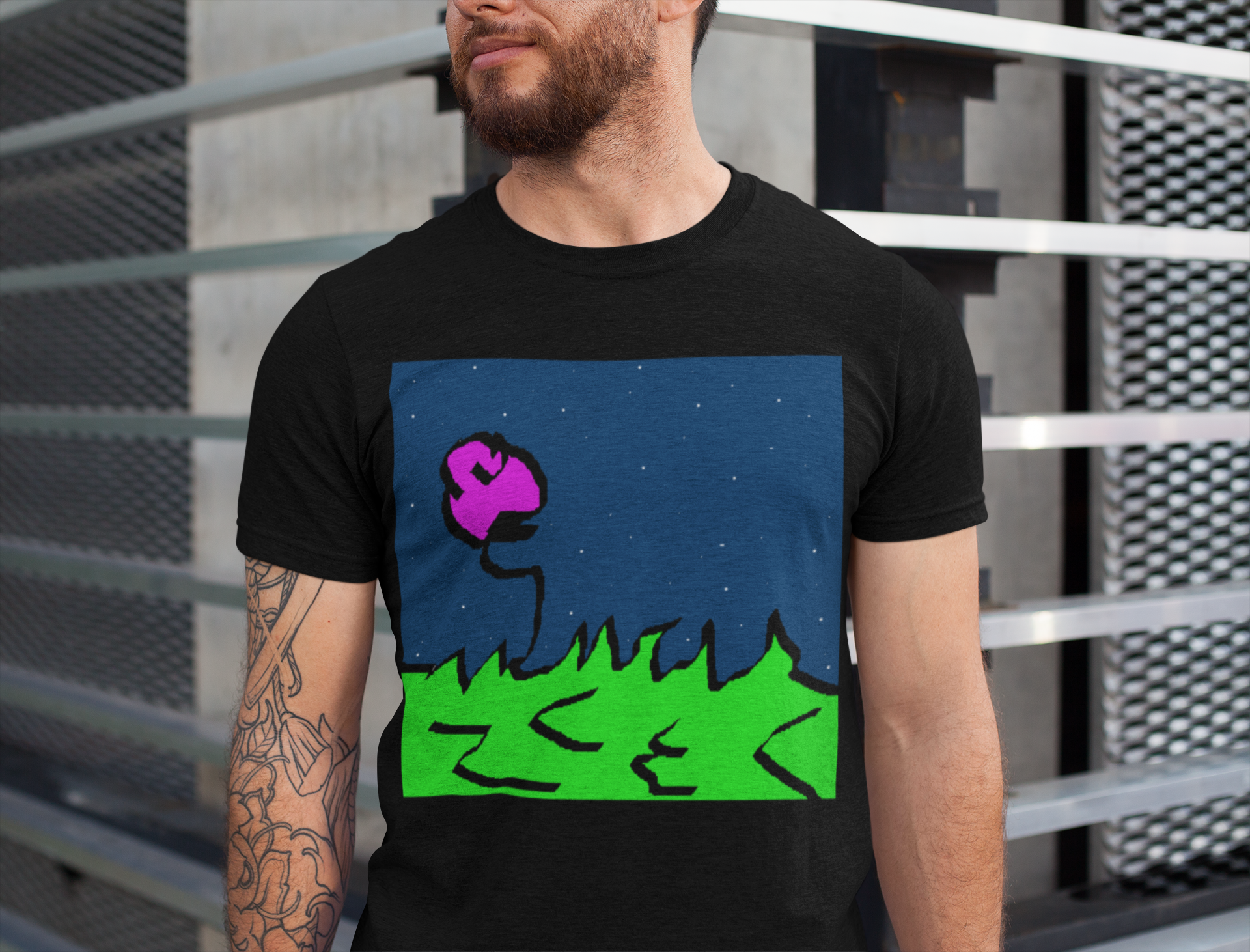 Consigo me imaginar deitado no espaço do lado da rosa, observando o céu estrelado.